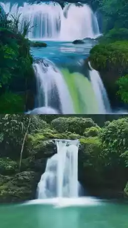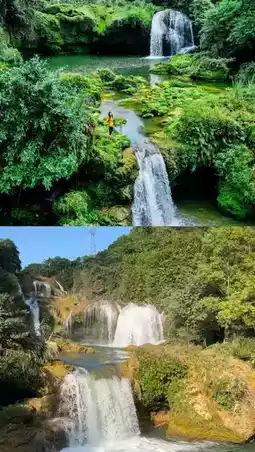 ⛰️When you get here, you can see three waterfalls with uncarved natural beauty. On the mountain between the springs, there is an "Eye of the Jungle" that seems to be watching over the mountains and rivers at all times. When you get close to the waterfalls, you can really feel the tremendous energy from nature~