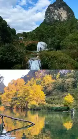 This is the Aibu Waterfall, which is formed by the confluence of three spectacular waterfalls of various shapes: Aibu, Matun and Huize. It is named after the village of Aibu. The upper source is the Nantan River, the largest river in Jingxi, and also the source of Detian Waterfall. It is a rare original ecological landscape in Baise City and even the whole Guangxi.