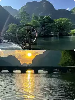 β«οΈ Goose Spring Sunset π: Be sure to squat for the farmer leading the cattle across the bridge at 18:30! The sunset dyes the rice fields golden, and the bamboo rafts float over the blue, glowing "glass water". Any casual shot is like an oil painting~ Remember to look down when paddling the bamboo raft, the small fish in the water will follow you π¦