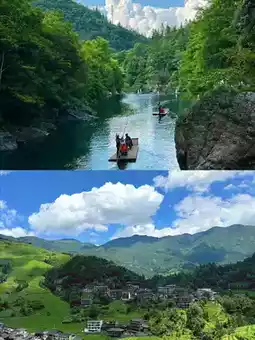 - **Ticket**: ¥48 (discounts to ¥25); bamboo raft ¥30/person (bargain for private boat).