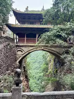 Cangyan Mountain stands as a natural fortress between heaven and earth, its towering peaks and dense forests creating an awe-inspiring sight. As you ascend the stone steps, ancient trees stretch skyward, and the gentle mountain breeze carries the deep, rhythmic breath of nature to your ears. The most breathtaking feature is the hanging temple, built precariously on the cliffside, seemingly suspended in mid-air. It is a testament to the ingenuity of ancient craftsmen and the profound power of faith.