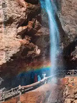 Waterfalls adorned with rainbows under the sunlight 🌈