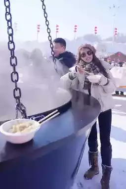 Even the Northeasterners were shocked, seeing a large iron pot with a diameter of two meters for the first time. Celebrating New Year on the Songhua River! The atmosphere is really great.