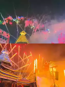 In the evening, we visited Fantawild, a place we've always dreamed of visiting. It wasn't crowded, so we enjoyed a variety of attractions, including the Chu Music, Qu Yuan, and Nuwa Mending the Sky. We also saw fireworks, a national music festival, and performances. The performances were quite impressive, and we felt the profound cultural heritage of Chu culture.