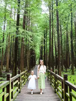 🌈Lizhong Water Forest Park is famous for its unique dike field landscape and dense water forest. The towering water cypress trees stand straight and tall, forming green barriers. Walking on the floating bridge, surrounded by shimmering water and lush trees, feels like being in a giant green maze, bringing a sense of coolness.