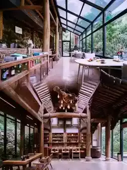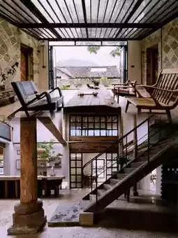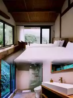 Guest rooms are distributed in the courtyards along the creek, each equipped with large floor-to-ceiling windows or large terraces, either overlooking the forest, bamboo forest, or clear streams, clouds and mist... Each room retains the old house's style to the maximum extent, with complete facilities including capsule coffee machines, Dyson hair dryers, JBL speakers...