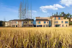 The scenery around the hotel is beautiful. Andi Town Yantou Village is nearby. A bend of Meixi River passes through the village. The sky is clear and the water is blue. The bridge is beautiful. The white walls and black tiles are green stones. The village is clean and beautiful. You can experience "free order" on-site immersive non-legacy and cultural creation production, such as tie-dyeing, making guqin, hand-beating glutinous rice cakes, and osmanthus cake making. By the Yan language lake, the breeze is blowing, and the golden rice waves sway with the wind, making you feel like you are in a paradise.