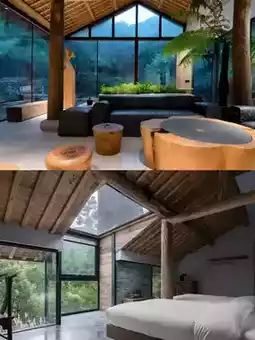 Independent mountain villas are scattered throughout the village, each with an average of 3-4 rooms, starting at 40 square meters, and each room is unique. If several families or friends are traveling together, they can be arranged to stay in the same mountain villa, enjoying both private and spacious public spaces.