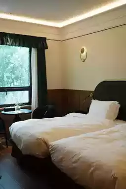 The exterior retains the original historic architectural style, and the interior is decorated with many vintage items full of nostalgia. Entering this hotel really feels like visiting a museum! When I got to the room, I absolutely loved the retro wall paneling style throughout the room! It’s like a dream back to the 1980s! The combination of dark green and brown furniture gives the whole room a rich texture. Every room has a fairly large balcony with the original architectural style preserved, overlooking a vast bamboo forest! It gives a faint feeling of being back at my grandmother’s house in childhood…