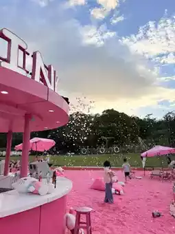 As soon as you arrive at the manor, children are captivated by all the Hello Kitty decorations! That huge inflatable Hello Kitty head has kids excitedly shouting “Kitty! Kitty!” There’s also the Kitty airplane on the hillside, with kids running around it several times, constantly interacting with the scattered Kitty plush toys 🐱 The little train area is even livelier, with kids watching the Kitty toys sitting inside the train and begging to “ride together” with them.