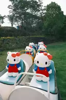 The pink plush car and plush little house are kids’ favorites. They crawl inside the house to touch the plush walls, curious and excited. There’s also a scene with Kitty sitting on small chairs, and kids insist on putting their own little toys there to “hold a meeting” together, having a blast. The park is filled with Kitty elements, and kids walk around searching for them like a treasure hunt, never feeling bored~