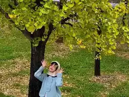 The leaves of the ginkgo forest were only a little yellow, like the youth of the nutmeg, a graceful prelude years later.