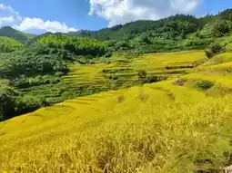 The terraced terraced fields of the autumn are like a golden satin soaked with years, spreading in layers across the folds of the mountains.