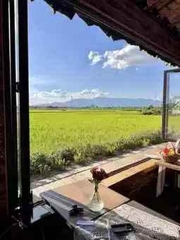 • Best photo spots: Wooden tables and chairs under the old camphor tree, the viewing platform by the rice fields. After 5 PM, the sunset bathes the golden rice fields, and the blue hour atmosphere is perfect for photos.