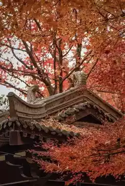 Stunning ancient architecture paired with vast maple leaves