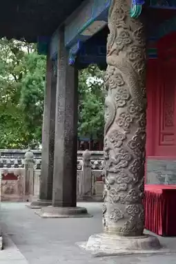 The main hall, the Hall of the Repeated Sage, enshrines a statue of Yan Zi. It was first built in the Yuan dynasty, with surrounding corridors supported by stone columns. The four columns in the front corridor are carved with cloud dragons, while the four side columns are carved with dragons, phoenixes, and flowers, which are relics from the Ming dynasty. Inside the hall hangs a plaque inscribed with "Purely Embodying the Sage" by Emperor Qianlong of the Qing dynasty. The original site of the humble alley had an ancient well, which was said to be used by Yan Zi, hence the name "Yan Zi Well." During the Xining reign of the Song dynasty, "Kong Junzonghan, the governor of Jiaoxi, first obtained the land, dredged and repaired the well, and built a pavilion on top of it."