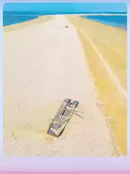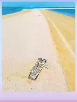 The gift of nature, Tentacle Beach. The "Tentacle" Beach, with its snow-white sandy shores stretching out like a jade belt towards the sea, is surrounded by water on three sides, narrow and winding. From a high vantage point, it looks like the antennae of an insect. The beach is submerged by the sea at high tide and reappears at low tide.🏝