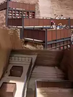 The layered stairs and platforms form a 'book mountain',
