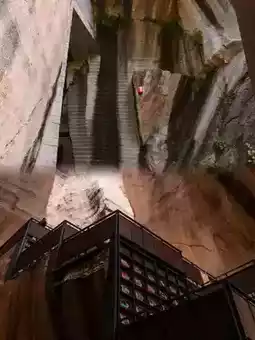 Magnificent sense of space: The bookstore has a clear height of 38 meters and a depth of about 50 meters, with a completely open top, forming an open-air space. On sunny days, sunlight filters through the stone crevices at the top of the bookstore, creating a mysterious and warm atmosphere.