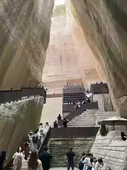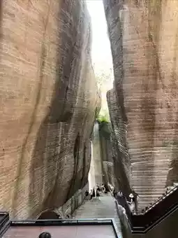 The bookstore is cleverly built by taking advantage of the gaps in the mine mountain. It is very special. There is a cafe at the door, where you can sit and watch the scenery and read a book. The weather must be good and there is sunlight. Through the cracks in the rocks, the light and shadow will hit the rocks, and the light and dark will be distinct. If there is no light, it will feel normal.