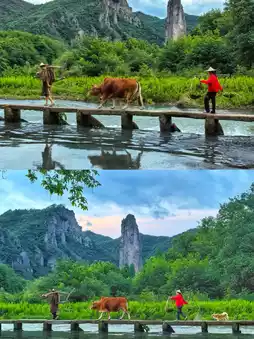 • Zhutan Mountain: This was the filming location for *Old Cattleman of Xiandu*. Show times are 9:30–11:00 am and 3:30–5:00 pm. Here, visitors can not only enjoy the picturesque scenery but also watch the free cattle herding performance and experience the tranquility and harmony of the countryside.