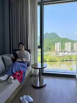 This time, the family stayed at the Jinyun Botting Hotel, where the daytime scenery was mesmerizing, and the nights were vibrant. Even doing homework by the window felt like a treat.