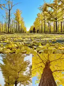 Autumn is one of Baicaopo’s most beautiful seasons. The ginkgo trees don golden coats, contrasting with the blue trails, creating a picturesque scene like poetry. The thousand-acre ginkgo forest reaches its prime viewing period; sunlight filters through sparse clouds, shining warmly and softly on each leaf. Walking in the ginkgo forest, the thick fallen leaves underfoot rustle, like an autumn symphony. Climb to Chenxi Pavilion for a panoramic view—thousands of acres of ginkgo trees stretch as far as the eye can see, like a beautiful oil painting. Moreover, with the gentle autumn breeze, red, yellow, and green leaves mingle on the hills, blooming in intoxicating colors that make you marvel at nature’s craftsmanship.
