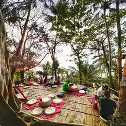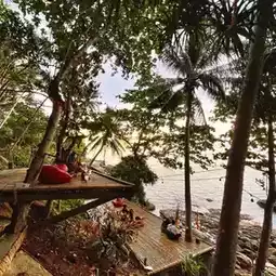 The surrounding atmosphere and view are amazing, cool and shady, relaxing. They have many zones to sit and rest. Each zone has hammocks or cushions. The walkway up and down may not be convenient for the elderly or children. Sit and relax and go around.