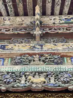 The eye-catching wood carvings of Jiwang Temple use a still method to show the history of its walking. On the balustrades under the eaves of the front and rear halls, there are pictures of Hou Ji leading people to engage in agricultural activities.