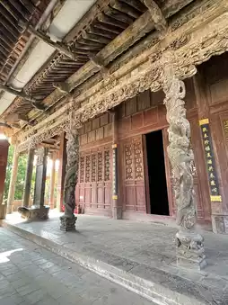 The stone carvings in the Jiwang Temple are definitely based on the art of divine craftsmanship. The most praiseworthy ones are the two dragon stone pillars in front of Houji Tower. They adopt the hollow high-relief technique. One is a fire dragon passing through the flaming red bird. Stone pillars, one is a water dragon stone pillar with clouds surging, fish leaping and dragons flying. The walls on the east and west sides of the Xian Hall are engraved with the Eight Views of Jishan and the Seven Ancient Chapters of Li Jingchun respectively.