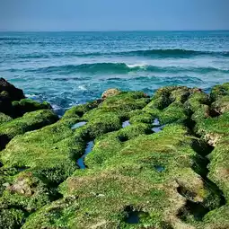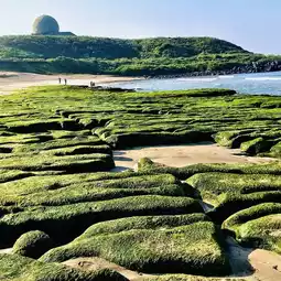 The calcareous grooves are covered with seaweeds such as Ulva and Sea Hair, forming green stone grooves with a total length of four kilometers and an average depth of 50 centimeters. From a distance, it looks like a green matcha carpet, which is particularly healing!