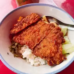 The pork ribs rice at the Dongdao Food Pavilion is very crispy