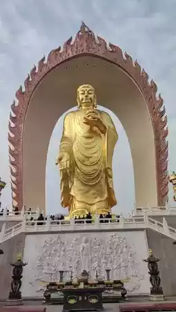 🕊️World's tallest golden Buddha|The 48-meter Amitabha bronze statue stands majestically at the foot of Mount Lu, covered entirely in gleaming gold leaf. The moment you reach the top after climbing 1,080 steps amidst rolling clouds will leave you awestruck! No commercialization or entrance fees, with free incense/tea/blessing cards offered. You might even encounter monks practicing walking meditation~