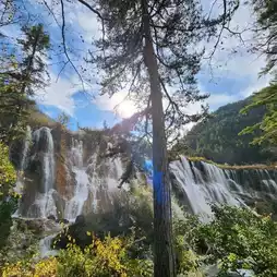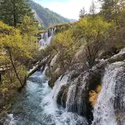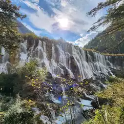 Jiuzhaigou is famous for its beautiful natural scenery of turquoise lakes, crystal clear waterfalls, lush forests, and snow-capped mountains, as well as its cultural diversity from the Tibetan and Qiang communities living in the area.