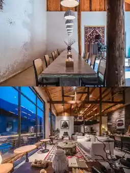 The overall design blends modern and traditional elements. The lobby features wooden beams paired with Tibetan clothing paintings, Tibetan carpets, and tea tables, creating a rich atmosphere. Inside the rooms, wooden furniture complements Tibetan woven fabrics, Tibetan-style lamps, prayer flags, and decorations made from Tibetan wooden boxes. Every detail highlights Tibetan elements, allowing guests to deeply experience the ethnic minority culture.