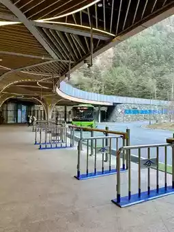 - When you pass the gate, take the green bus that is parked. This shuttle bus will take you to both ends of the park. The park will randomly select the destinations to spread out tourists so they are not all in one place in the park. Tell the staff that you want to take the Shuttle bus to Primeval Forest (right side). Normally, the bus will take you to the last location of the Y and you can walk around.