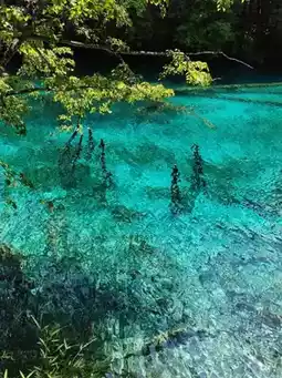 2️⃣ Sunshine makes Five-Color Pond and Five-Flower Lake dazzle with shifting blue-yellow-green hues.