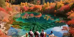 Golden October sees colorful forests dyeing lakes, frosted leaves floating, and water saturated with red-yellow hues. Tiger Mouth viewpoint offers the most breathtaking Five-Flower Lake panorama, while Shuzheng's 19 terraced lakes interplay with golden birches.