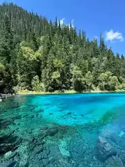 The lakes in Jiuzhaigou are known for their exceptional water clarity — you can often see several meters below the surface.