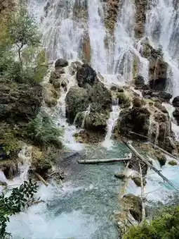 Visitors can walk on the nearby wooden paths and bridges to get close-up views of the waterfall and its source, Pearl Shoal.