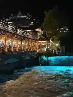 Day 4: Left Jiuzhaigou and headed to Dujiangyan, which took 6-7 hours by car—no joke! Upon arrival, we admired the Blue Tears phenomenon. The area was lively with many food stalls.