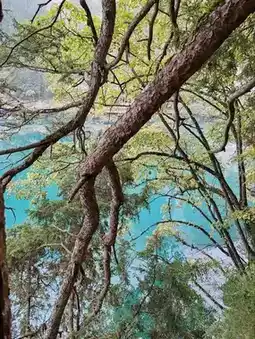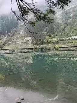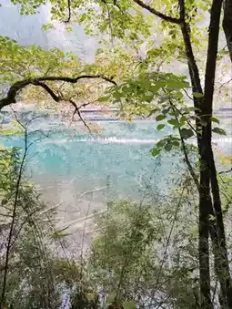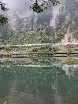 Closer to the lakeshore, clear streams meander through grasses half-yellow and half-green, while fallen logs and shrubs intertwine, blending quietude with rustic charm.