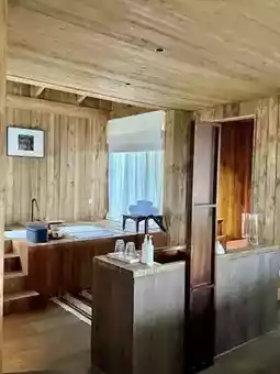 Stay in an independent courtyard villa with pure Tibetan wooden style🏡 Spacious, including a living room, corridor, and scenic tea pavilion🍵 The room is full of design🛏️ lying in bed you can see the sunlit golden peaks🌅 so chill~ The room has floor heating♨️ with strong water pressure and fast hot water in the shower, and the bedding is so comfortable you won’t want to get up~