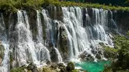 - Pearl Shoal Waterfall: Famous for being featured in the ending scene of the 1986 version of "Journey to the West," the waterfall spans over 200 meters, with water flowing over calcified shoals. The splashing droplets resemble thousands of jumping pearls, and rainbows often appear when sunlight shines. Standing on the boardwalk, the mist hits your face, refreshing and cool, but be careful of slippery footing and protect your photography equipment.