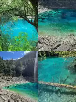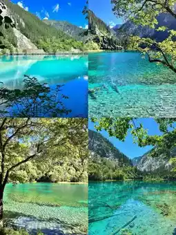 • Five Flower Lake - The water is emerald green like jade, sparkling under the sun✨