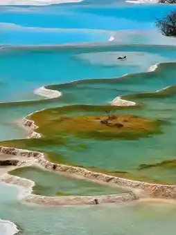 🌊 Encounter the colorful, oil-painting-like water hues at Five Flower Lake; listen to the natural symphony of waterfalls striking jade at Pearl Shoal—every frame of Jiuzhaigou is a poem left by the Creator on earth🏞️