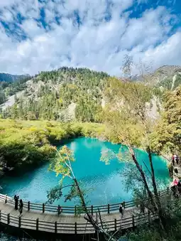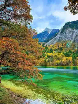 Jiuzhaigou, a natural treasure located in western Sichuan Province, China, boasts breathtaking scenery, including pristine lakes, colorful waterfalls, and forests, earning it the nickname "Water Palace." Located over 2,000 meters above sea level, it offers a vibrant feast of natural beauty throughout the four seasons. In autumn, the dazzling contrast of maple-colored mountain peaks and azure lakes creates a celestial landscape.