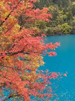 The water is so crystal clear! The autumn colorful forests are simply a masterpiece of nature 🏞️ "Once you've been to Jiuzhaigou, you won't want to look at any other waters" is no joke!