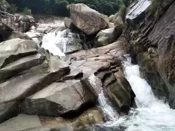After billions of years of evolution, a long canyon with towering rocks and overlapping peaks was formed in Dazhang Mountain. The canyon stream flows down from the Tianchi, winding through the canyon, twisting and turning, sometimes slow and sometimes fast, forming waterfalls of various sizes along the way. Below the waterfalls are pools of different sizes and shapes, with deep pools as clear as dye and shallow water as clear as crystal.