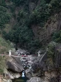 The valley is filled with jagged rocks and gurgling springs. Towering mountains flank the narrow plank road that clings to the mountainside. Walking along it, I couldn't help but wonder: